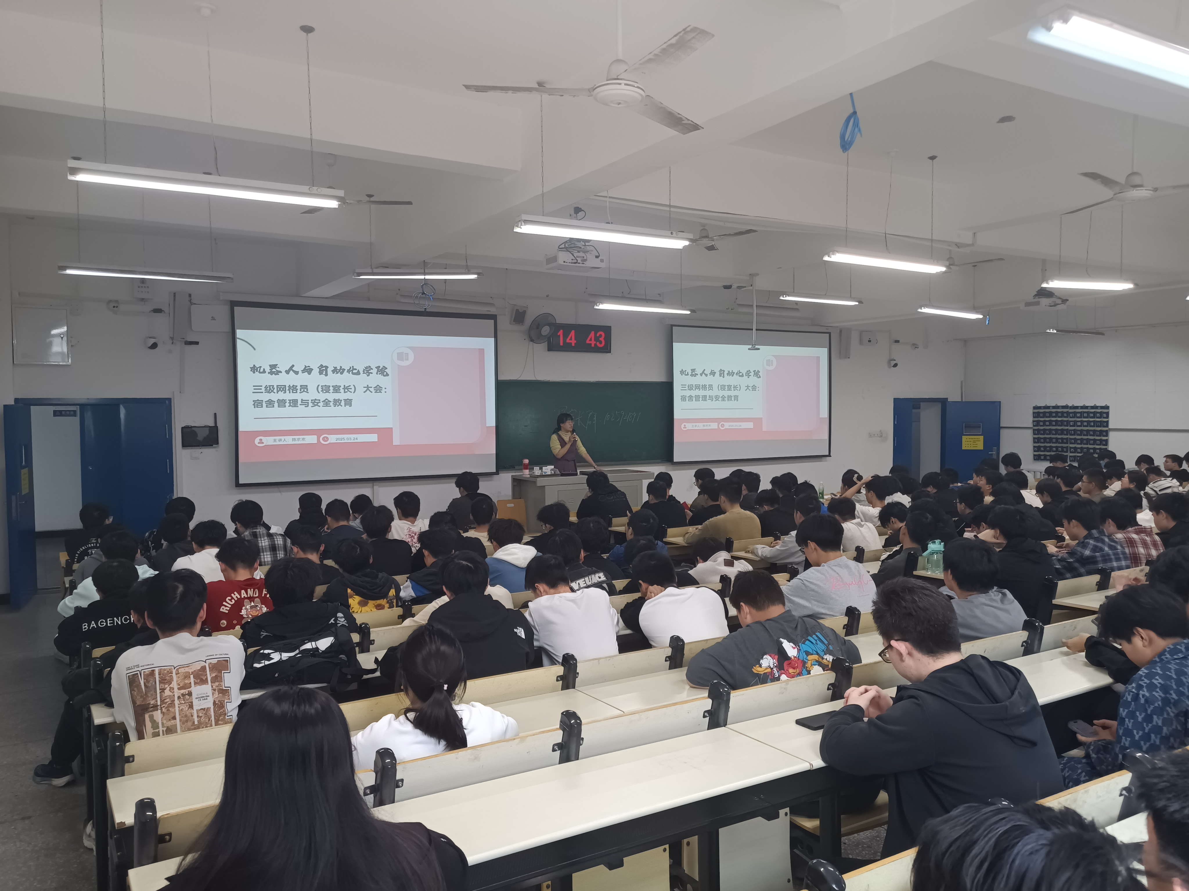 本网讯(文 朱晓妍/图 陈欢欢)为深化员工宿舍网格化管理,提升宿舍安全管理水平,营造安全、文明、和谐的宿舍环境,3月24日,VSport体育召开2025年三级网格员(寝室长)专题工作会议。学工办主任陈欢欢、宿舍管理中心负责人朱晓妍及全院近200名寝室长参加会议。