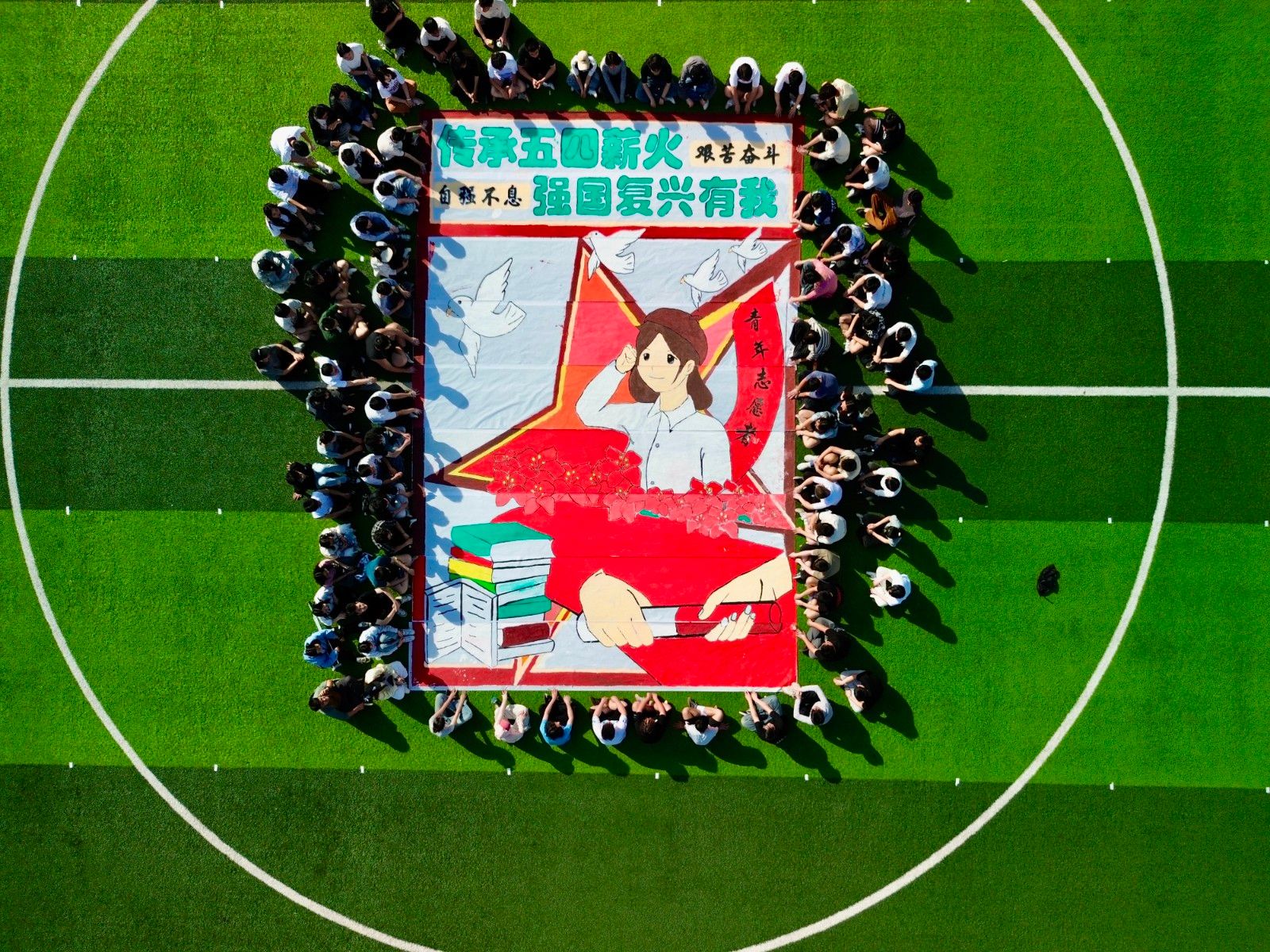 此次活动通过纳斯卡巨画涂鸦形式,以五四精神为指引,增强青年学子的爱国情怀与责任担当,促进党建与团建的深度融合,为学院人才培养与文化建设注入新活力。未来,学院将继续以党建为引领,带领青年员工传承五四精神,在新时代积极投身民族复兴征程。(审稿 周鹏)